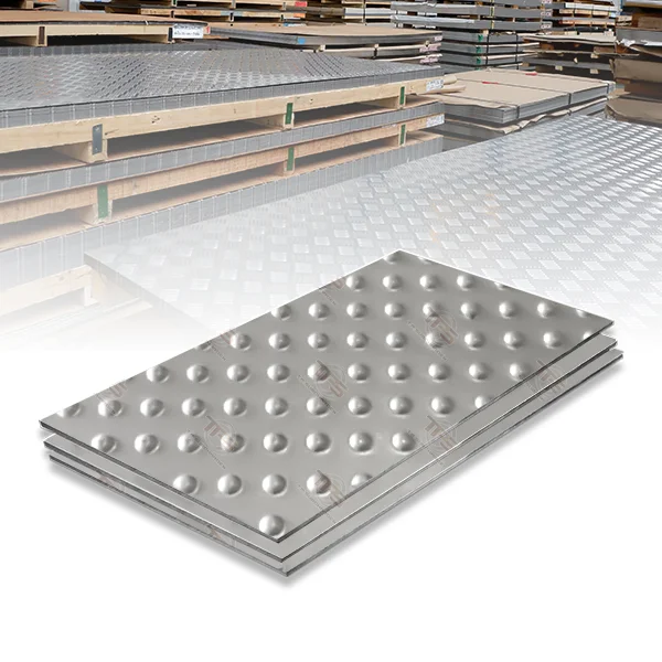 คือ สแตนเลสที่มีลายนูนขึ้นมา อาจเกิดจากการหล่อ หรือ ผ่านกระบวนการนำแผ่นเรียบไปปั๊ม ให้เกิดลายนูน ประโยชน์แผ่นสแตนเลสชนิดนี้ เพื่อช่วยป้องกันการลื่นไถล่ บางกรณีอาจนำไปใช้ในงานตกแต่ง